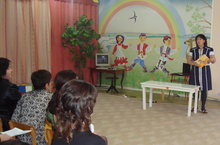 В рамках районного августовского совещания работников образования Азнакаевского муниципального района была организована презинтация работ образовательных учреждений по национальному воспитанию.Гайсина З.Г., воспитатель по обучению русскому языку с воспитанниками подготовительной группы МБДОУ № 9 подготовила мастер - класс "Учимся играя" Была организована выставка дидактических игр и пособий по обучению детей двум государственным языкам.