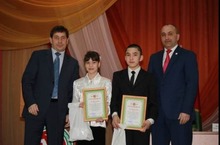 Бадминтон буенча югары күрсәткечләргә ирешкән укучылар Нурмыева Ләйсән,Хайруллин Раиль һәм физкультура укытучысы Сафин Ринат Хузиновичка Азнакай муниципаль районы башлыгы М.З.Шайдуллин сертификатлар тапшырды.Котлыйбыз!