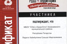 Cертификат участника Всероссийского конкурса "РДШ - территория самоуправления" 22.05.2018