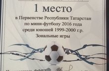 4-5 ноября 2016 года в г. Бугульма команда «Барс» приняла участие в Первенстве Республики Татарстан по мини-футболу (зональный этап) 1999- 2000 г.р. Учащиеся ДЮСШ «Барс» заняли 1 место, под руководством тренера – преподавателя Гизатуллина Ленара Ольфатовича.