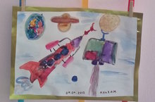 Выставка детских рисунков на тему "Космические просторы". На выставке представлены работы детей подготовительной к школе группы.