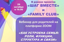 Вебинар для родителей на платформе ZOOM «КАК УСТРОЕНА СЕМЬЯ: РОЛИ, ФУНКЦИИ, СТРУКТУРА И СВЯЗИ» 28.10.2021