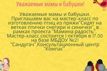 Приглашение на мастер-класс в рамках проекта "Мамина радость" 30.09.2020