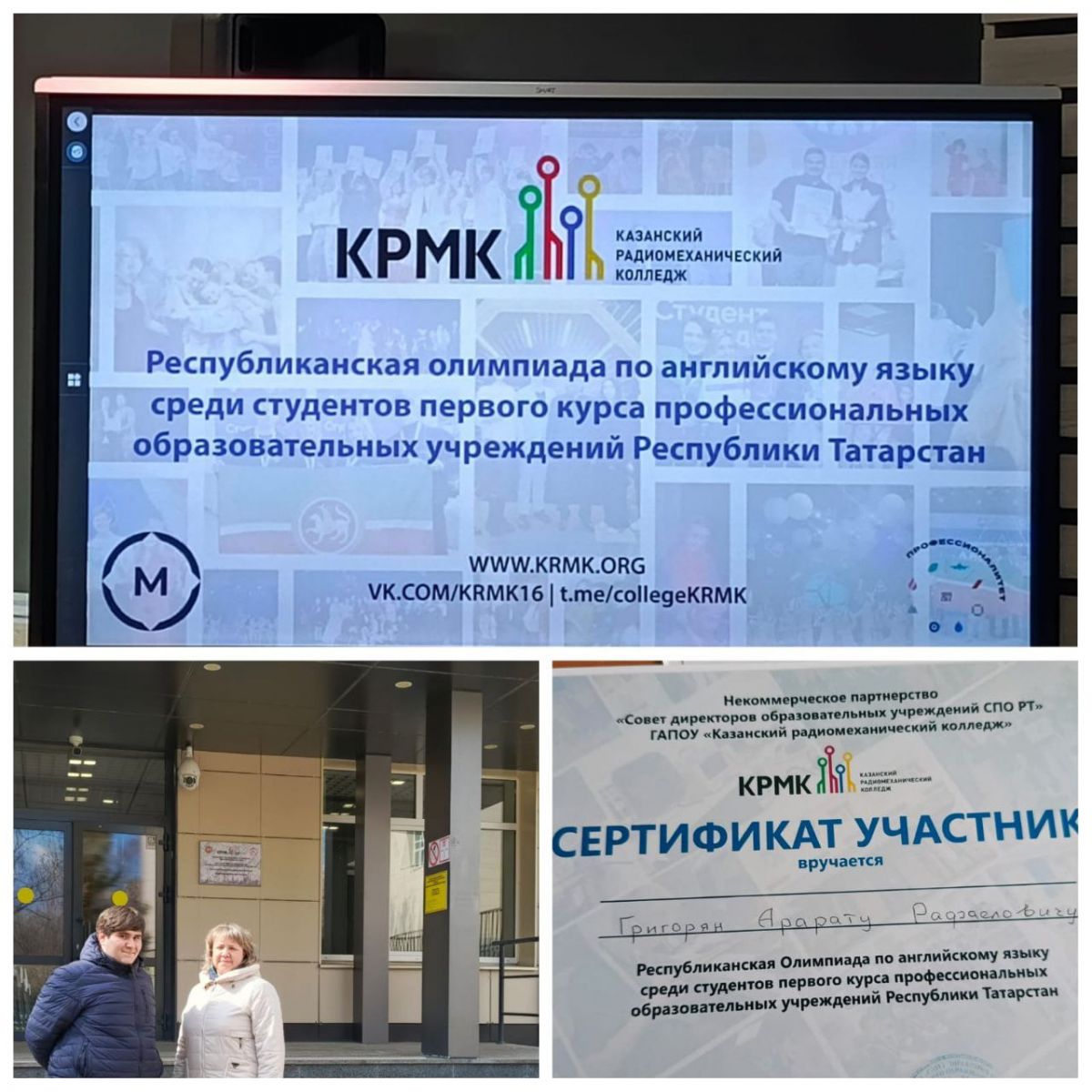 Обучающийся техникума Григорян Арарат 11 апреля принял участие в Республиканской Олимпиаде по английскому языку среди студентов первого курса профессиональных образовательных учреждений Республики Татарстан в "Казанском радимехатическом колледже".