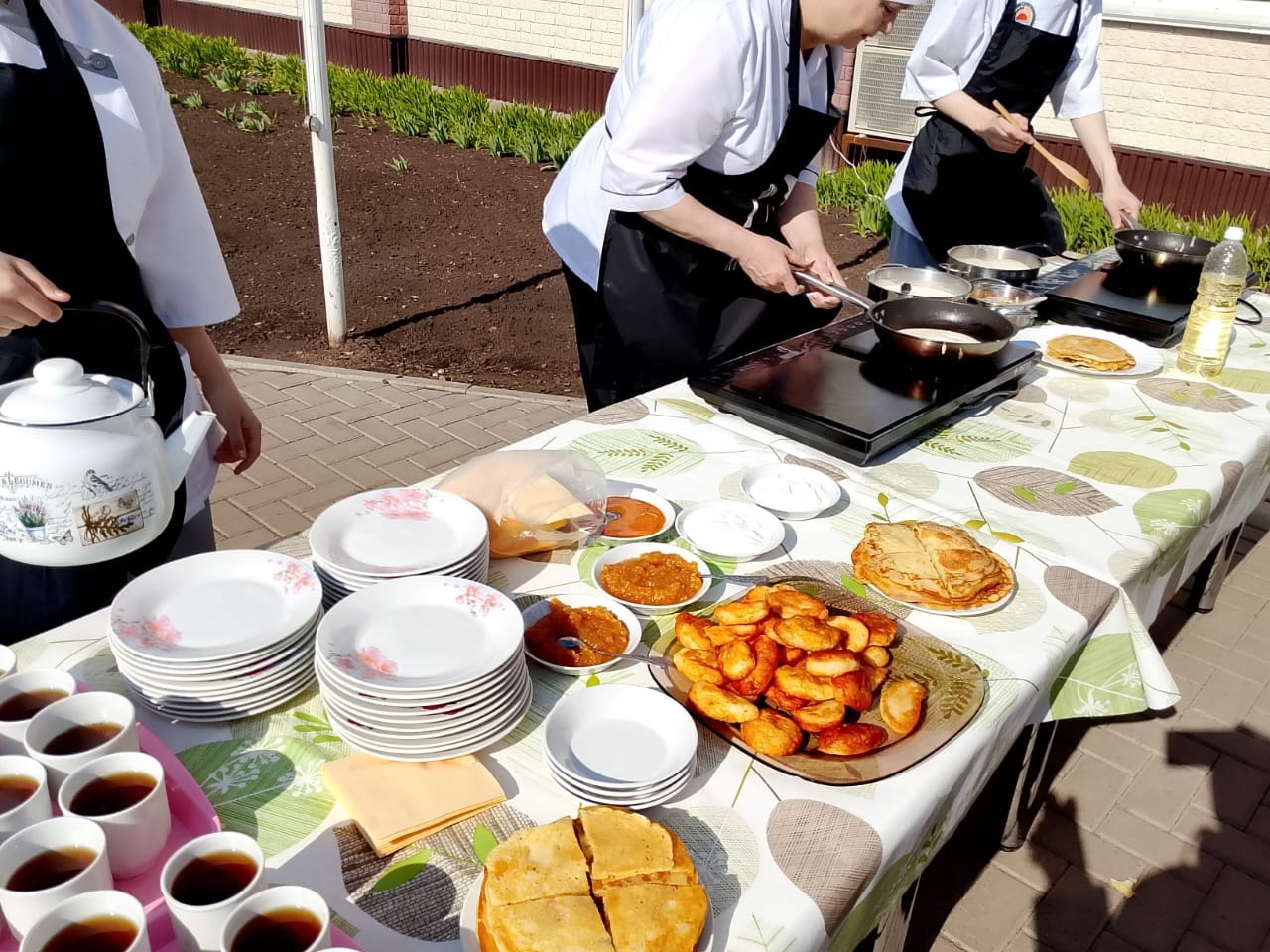 Повара техникума пекли ароматные блинчики с различными начинками прямо на месте, чтобы угощать посетителей. Активистки техникума встречали зажигательными танцами. На стоянке перед входом был выставлен целый ряд автопарка мощной техники, что создавало впечатление масштабности и оригинальности мероприятия.