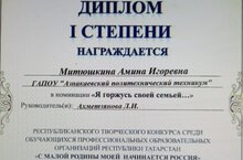 Обучающаяся гр. ЭБУ-23 Митюшкина Амина получила диплом I степени за видеоролик, посвященный семье. Поздравляем!