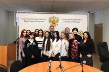 Тимербулатова Альбина Раяновна провела беседу об истории судопроизводства. Рассказала о первом председателе Азнакаевского городского суда Сафине Р.Е., (участник ВОВ). Встреча с председателем Шарифуллиным И.И. проходила за круглым столом, где участники группы Эк.БУ-22 задавали вопросы и получали достоверные ответы.