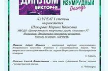 27.11.2021 Педагог дополнительного образования Шакирова М.И. стала лауреатом 1 степени на Международном фестивале-конкурсе детского и юношеского творчества "Изумрудный дождь". 30.11.2021