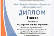 26.11.2021 Учащаяся объединения "Палитра" Шакирова Камила удостоена диплома 1 степени на Республиканском конкурсе-фестивале "Патриоты России" 30.11.2021