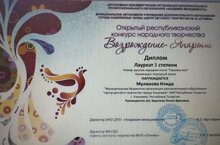 Поздравляем Мулюкову Илиду с победой на Республиканском конкурсе народного творчества "Возрождение - Яңарыш" 11.03.2024