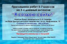 Внимание‼‼ ????Приглашаем ребят 5-7 классов на трехдневный курс по сайтостроению "Я создаю сайты". Интенсив по созданию сайтов рассчитан на обучение с нуля, где не требуется знание кода веб-программирования. Большая часть занятий посвящена практике, во время обучения каждый ученик создает собственный проект на конструкторе сайтов и размещает его в интернете на бесплатном хостинге. ????Занятия будут проходить на зимних каникулах: с 3 по 5 января. ⌚Продолжительность одного занятия в день: 2 урока по 45 минут с переменкой. ???? Место проведения: Центр детского творчества по ул. Нефтяников, 15. ???? Стоимость интенсива: 800 рублей. 07.12.2023