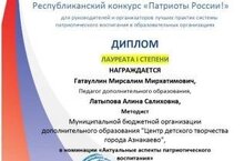 Поздравляем Гатауллина М.М. и Латыпову А.С. - победителей Республиканского конкурса "Патриоты России" для руководителей и организаторов лучших практик системы патриотического воспитания 07.12.2023