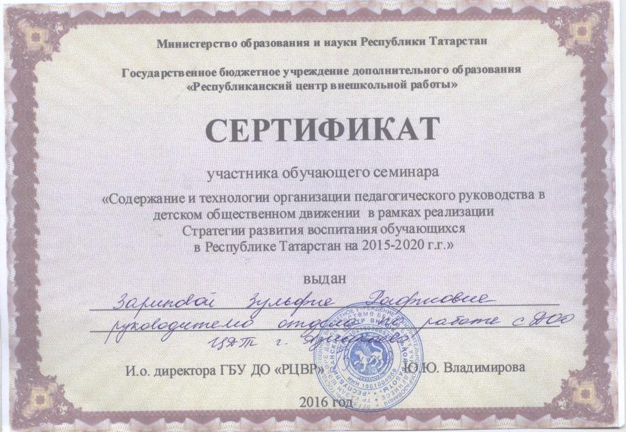 Сетификат участника обучающего семинара (Зарипова З.Р.)