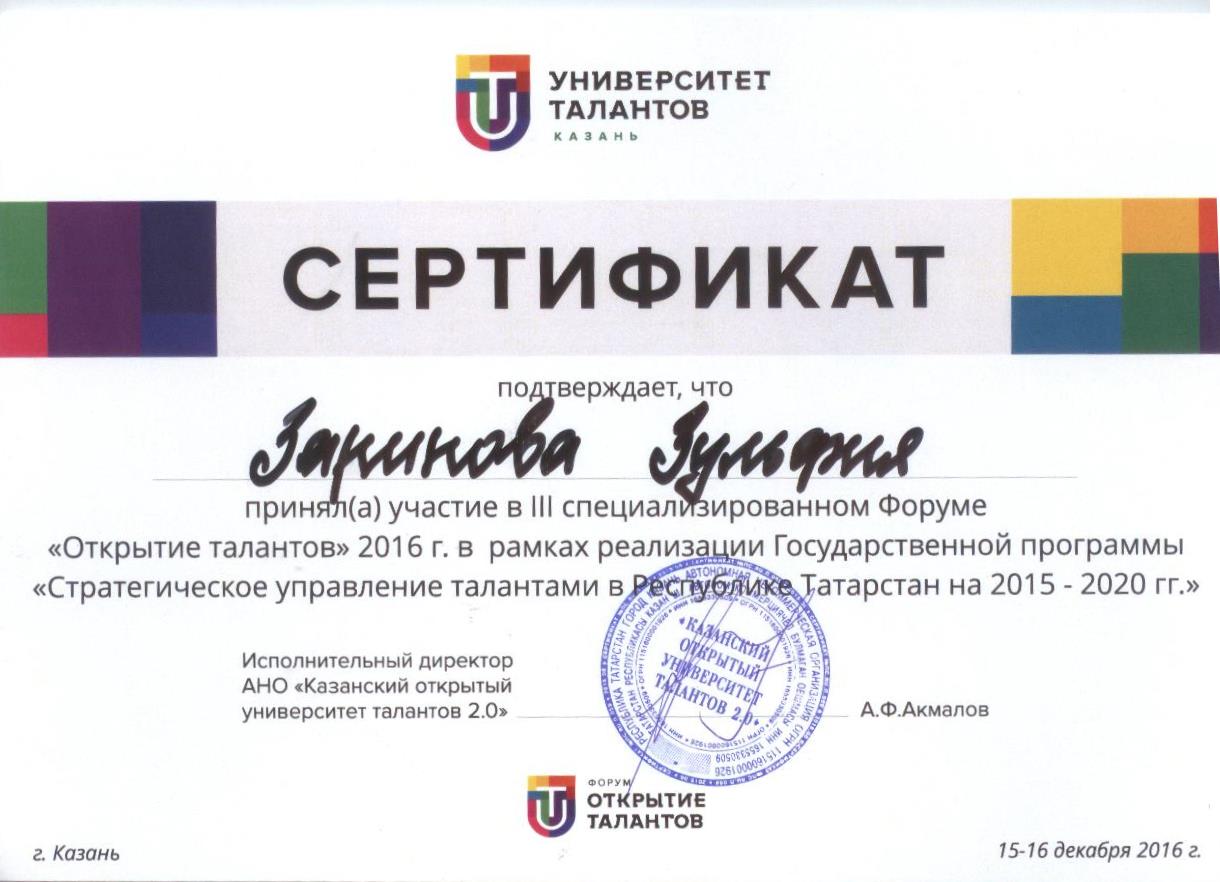Сертификат участника за презентацию опыта работы (Закиева Р.Р.)