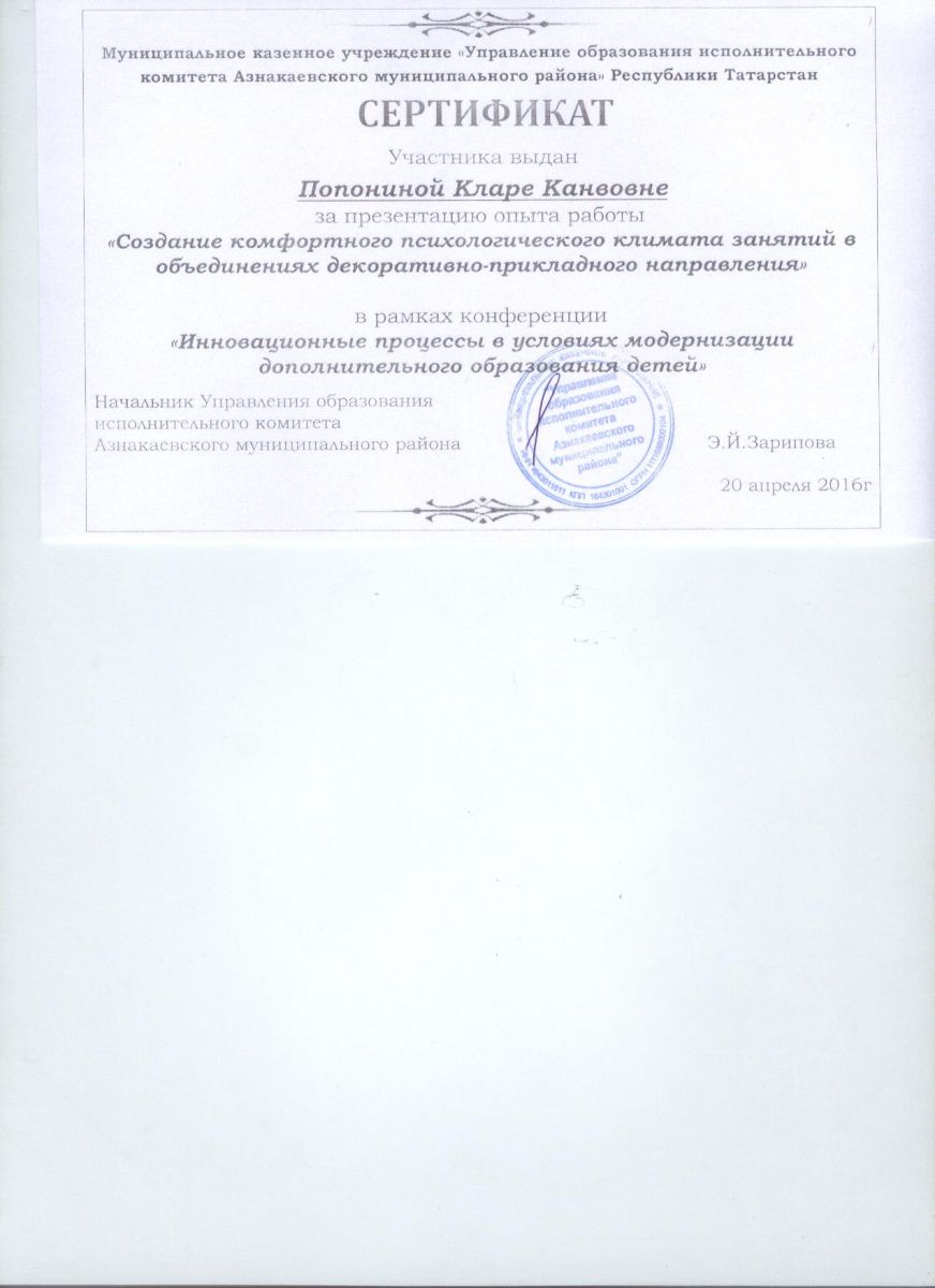 Сертификат участника за презентацию опыта работы (Попонина К.К.)