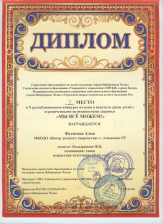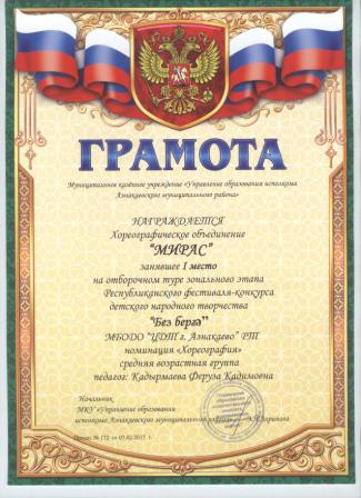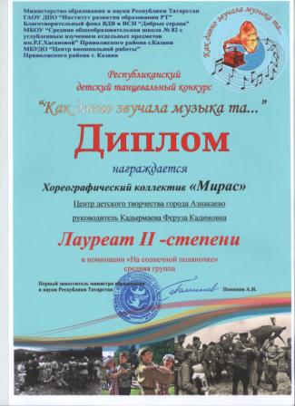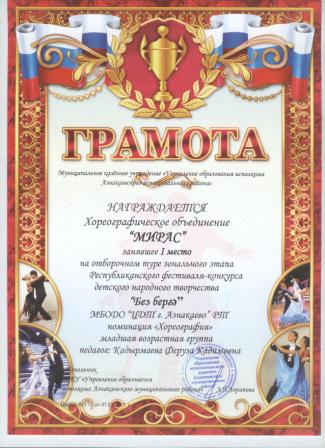 3 место на Открытом Республиканском конкурсе хореографических коллективов ("В вихре танца" (Ибрагимова Л.)