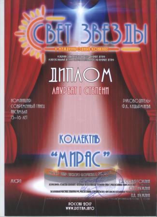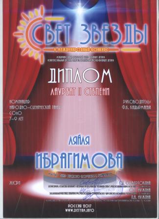 Лауреат 2 степени в международном конкурсе "Свет звезды" (Ибрагимова Л., Кадырмаева Ф.К.)