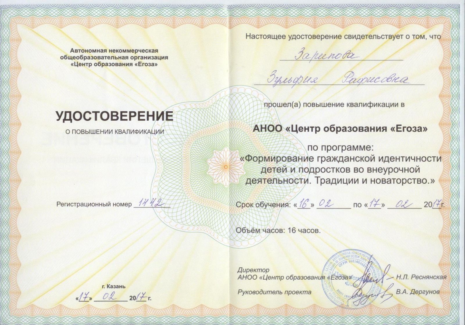 Удостоверение о повышении квалификации (Зарипова З.Р.)