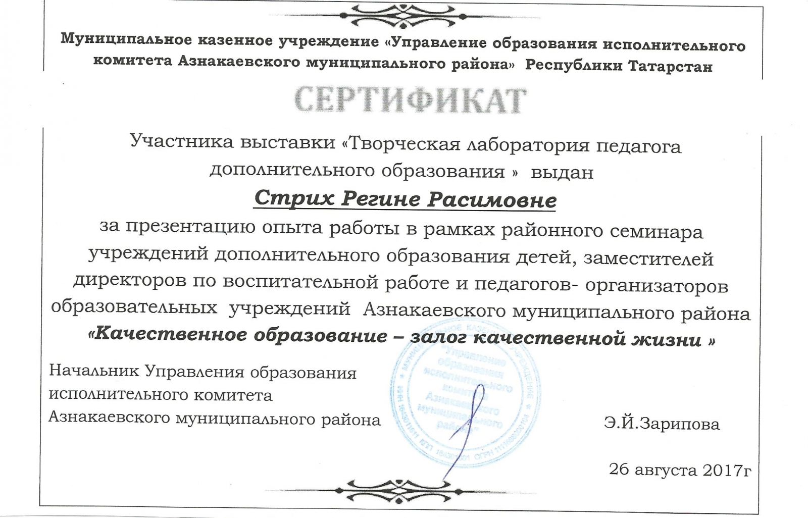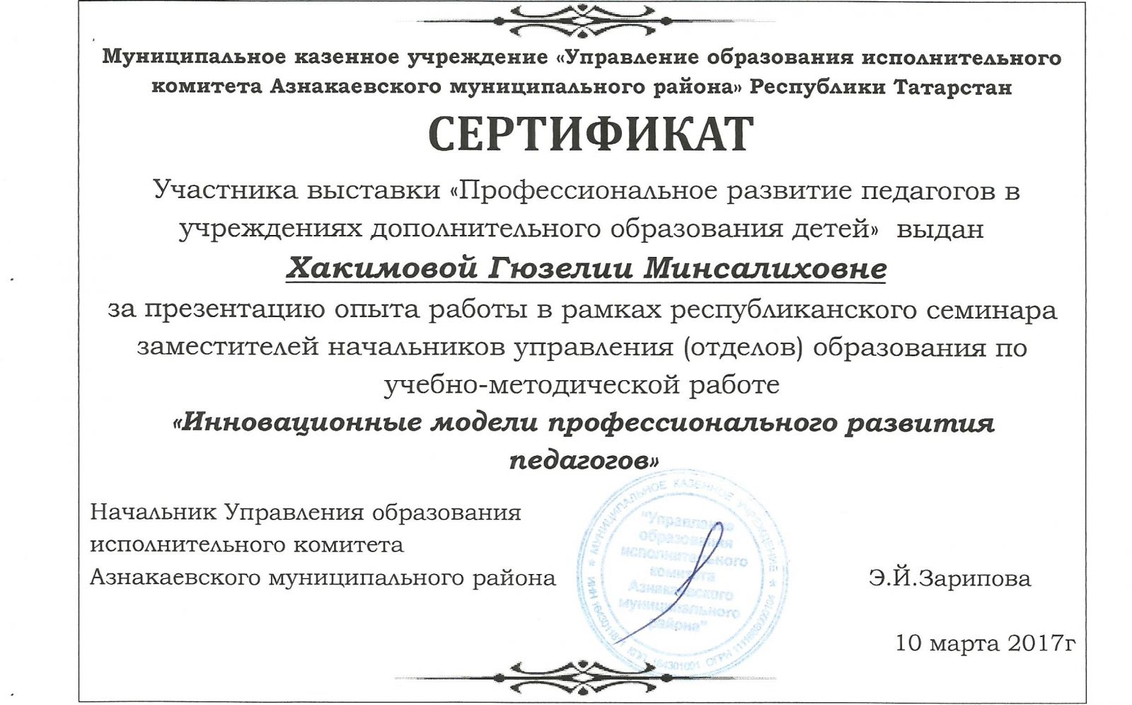 Сертификат участника районного семнара УДО (Латыпова А.С.)