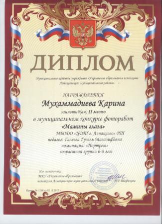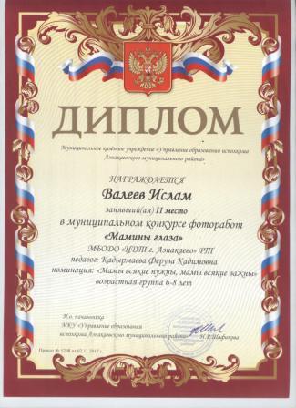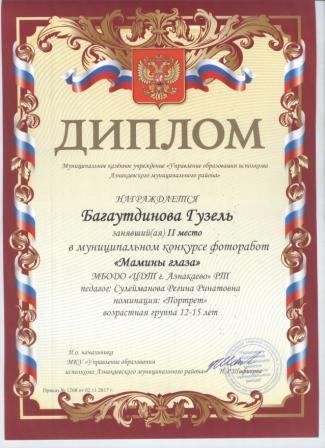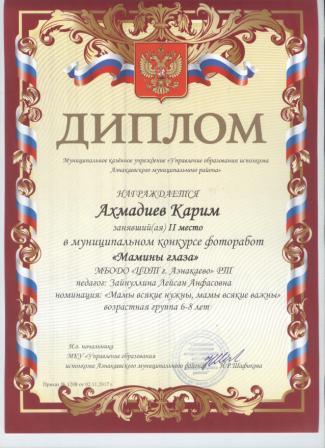 2 место в муниципальном конкурсе фоторабот «Мамины глаза» (Валеев И., Кадырмаева Ф.К.)