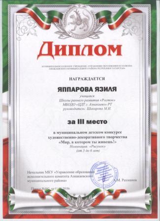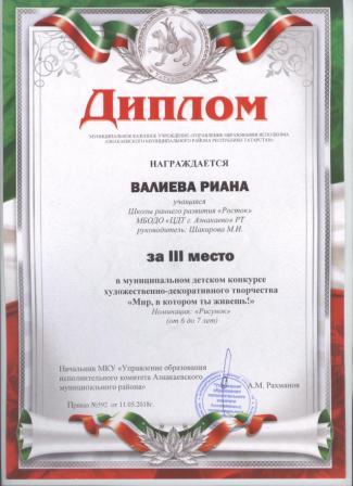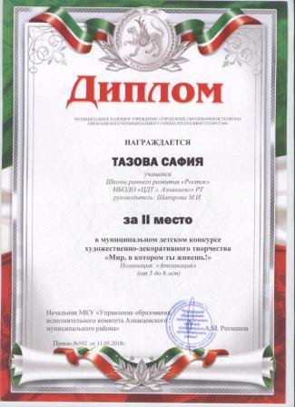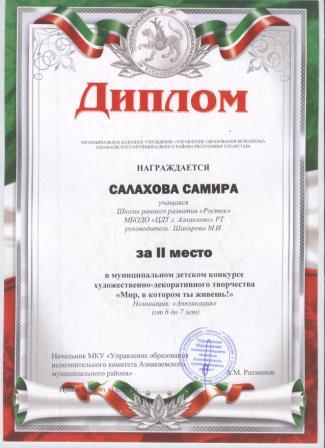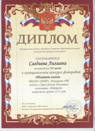 3 место в муниципальном конкурсе фоторабот «Мамины глаза» (Шайсултанов Т., Сафарова Р.Р.)