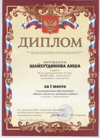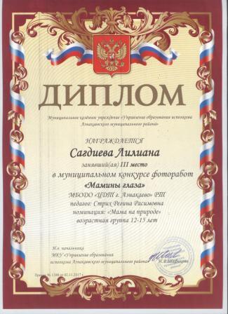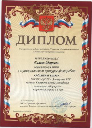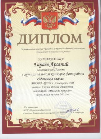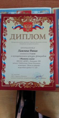 1 место в муниципальном конкурсе фоторабот «Мамины глаза» (Галеев М., Кашапова В.Х.)