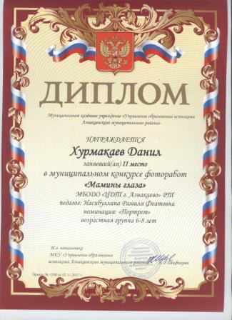 2 место в муниципальном конкурсе фоторабот «Мамины глаза» (Хурмакаев Д., Насибуллина Р.Ф.)