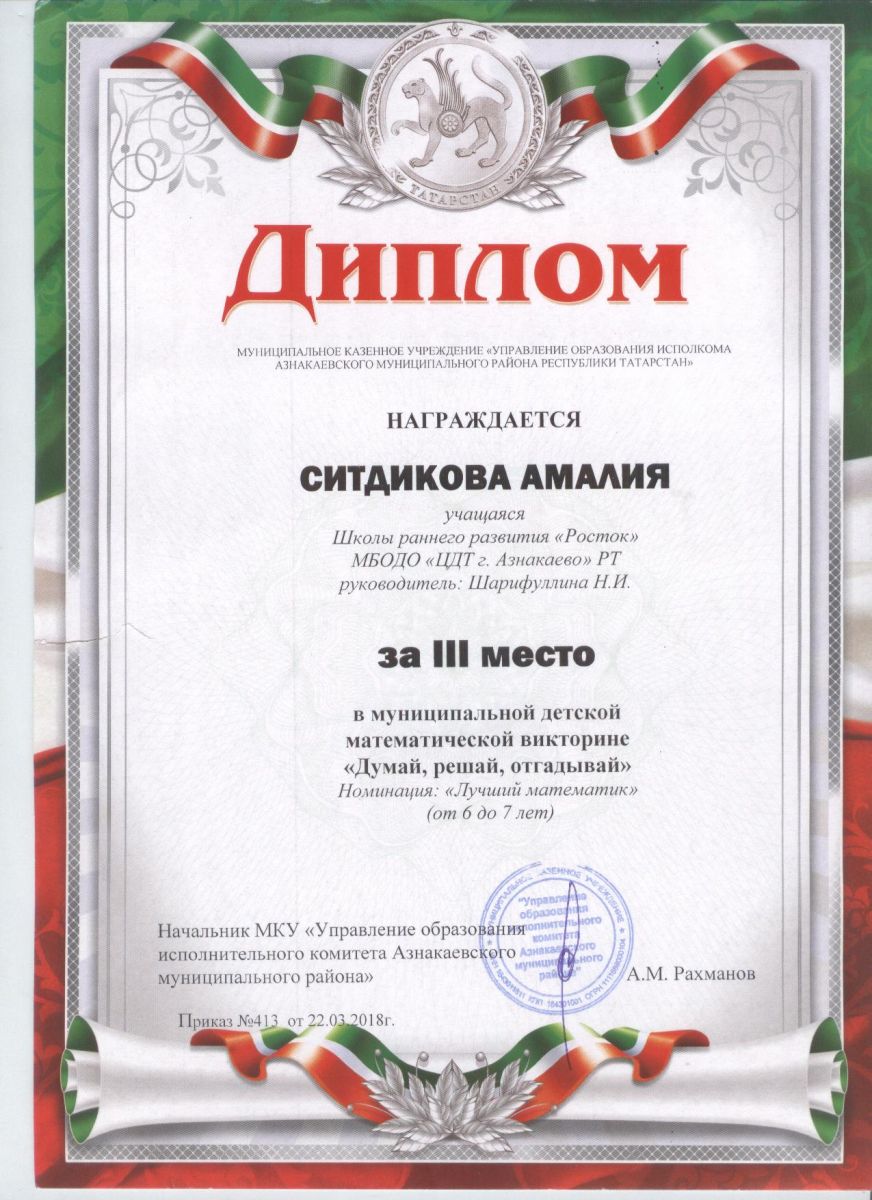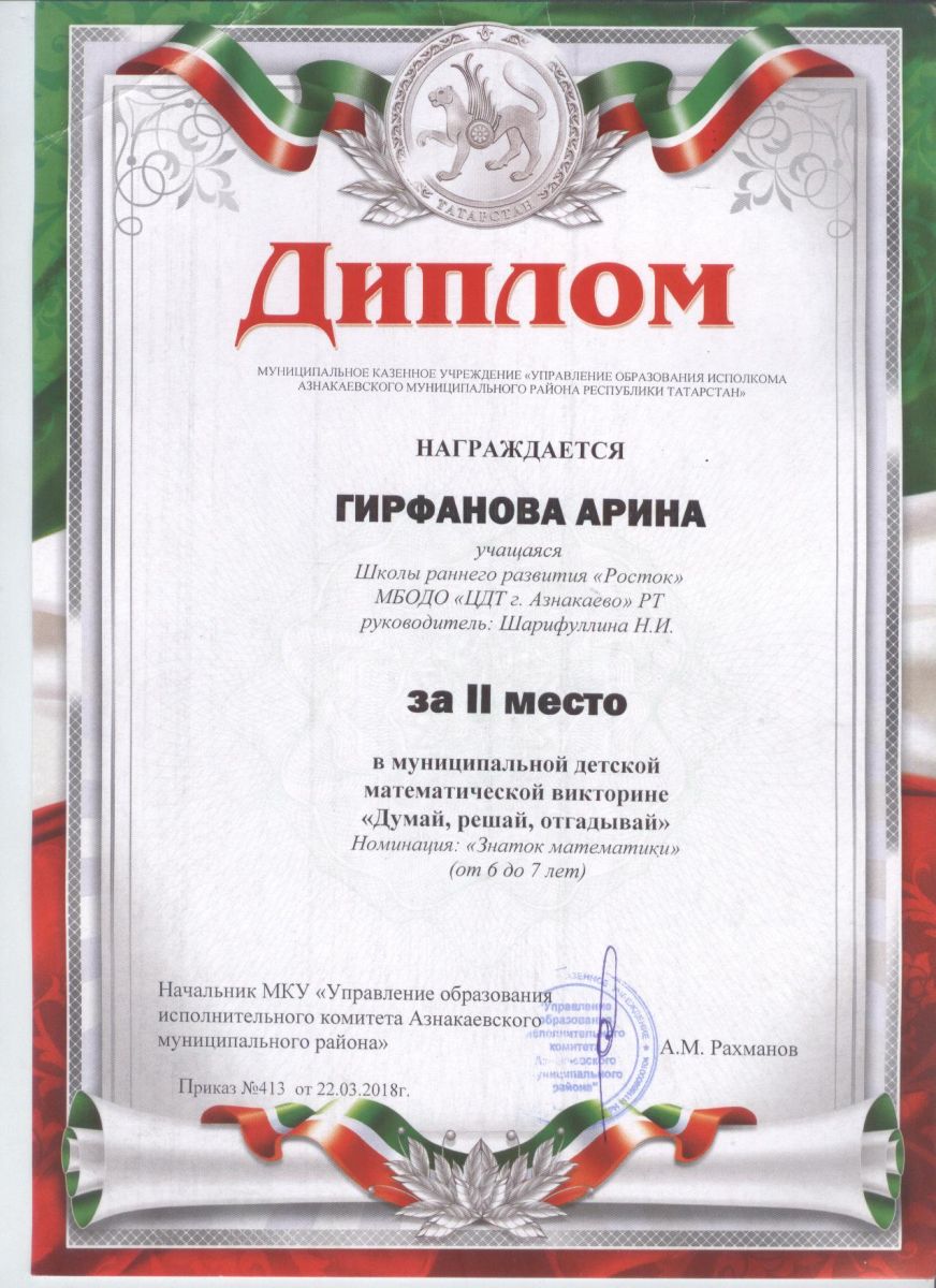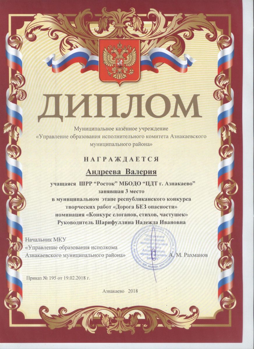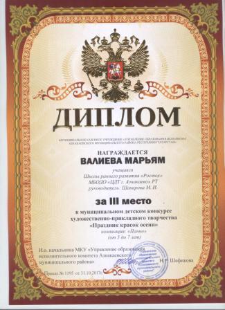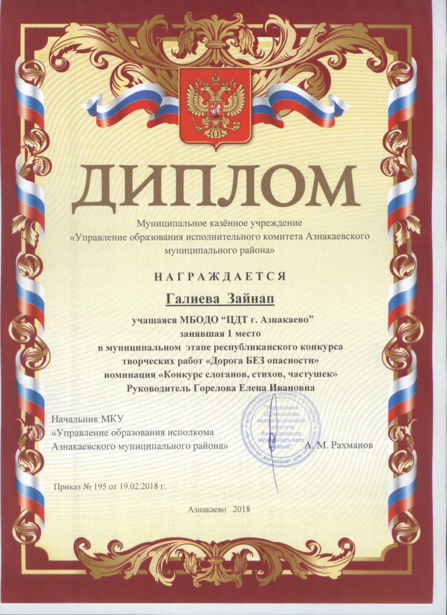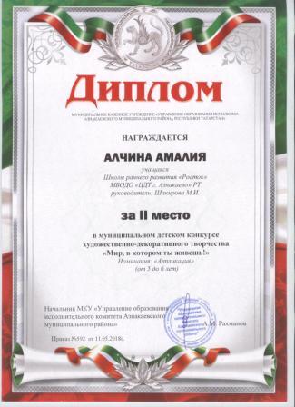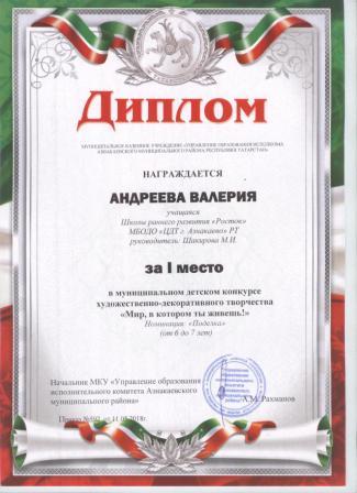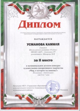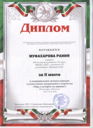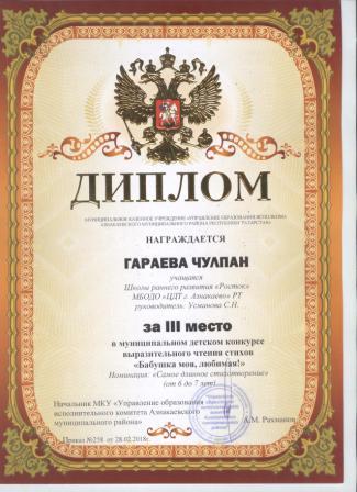 Дипломант муниципального конкурса "Чулпан" (Ганиева А., Стрих Р.Р.)