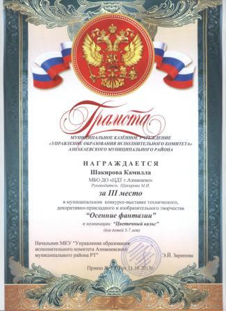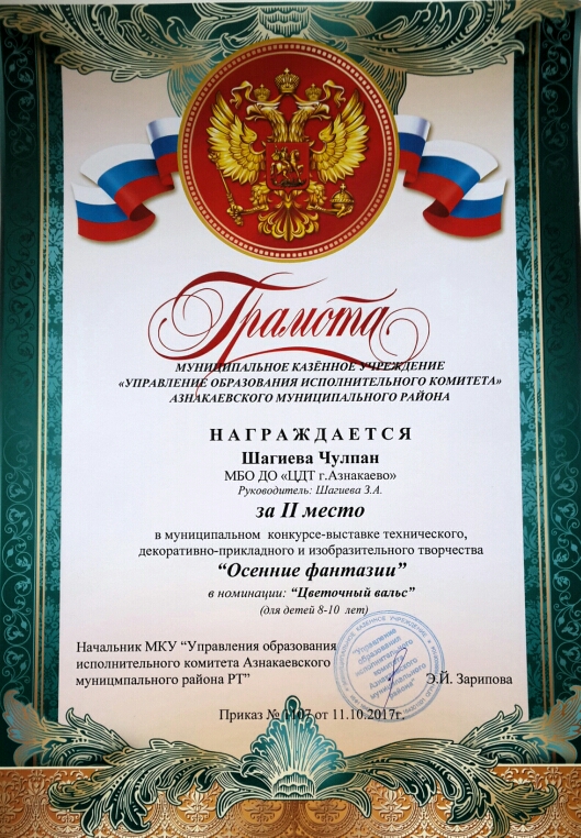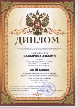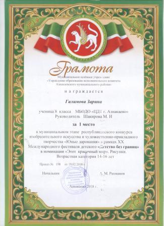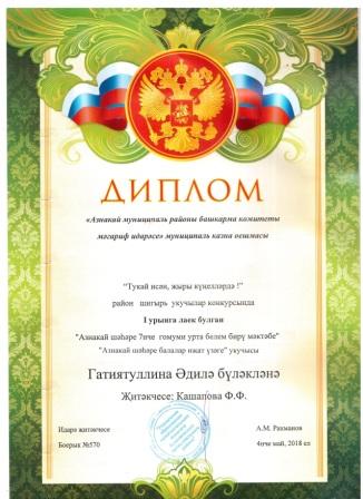 1 место в муниципальном конкурсе "Тукай исән, җыры күңелдә" Гатиятуллина Э.)