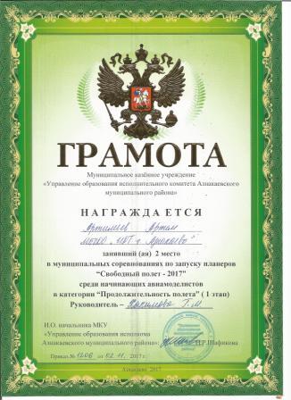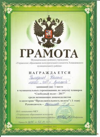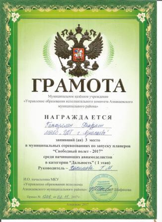 1 место в первенстве РТ по спорту сверхлегкой авиации (Хамидуллин Ш.)
