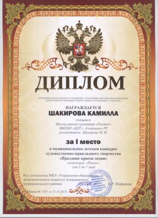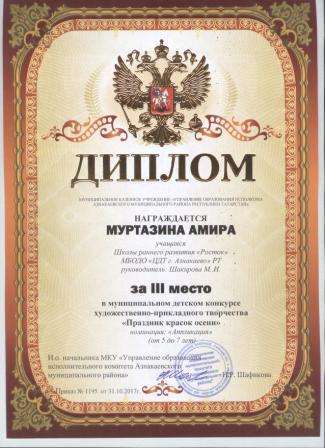 Дипломант муниципального конкурса "Чулпан" (Галимова З., Шакирова М.И.)