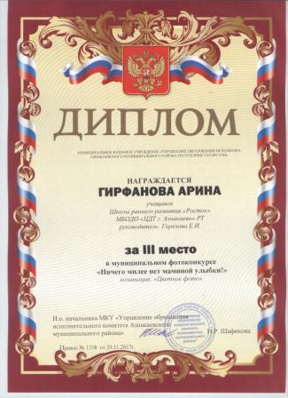 3 место в муниципальном конкурсе фоторабот «Мамины глаза» (Сагдиева Л., Стрих Р.Р.)