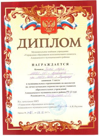 2 место в муниципальных соревнованиях по шахматам на личное первенство (СултановА., Шайдуллин Р.Р.)