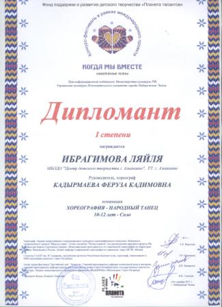 1 место во Всероссийском творческом конкурсе «Идет волшебница зима» (Шагиева Ч., Шагиева З.А.)