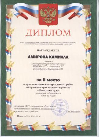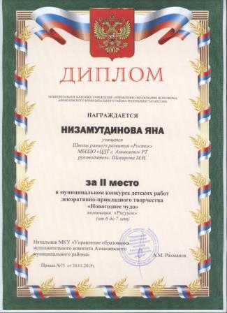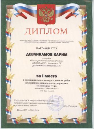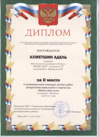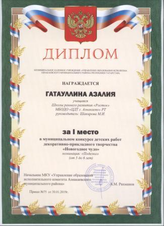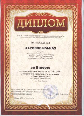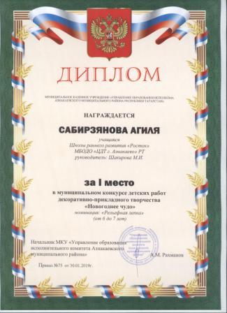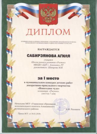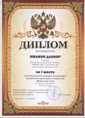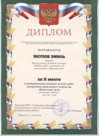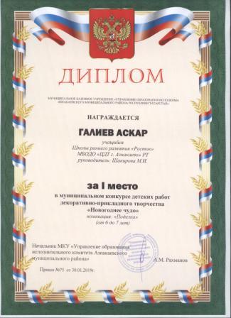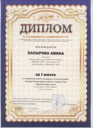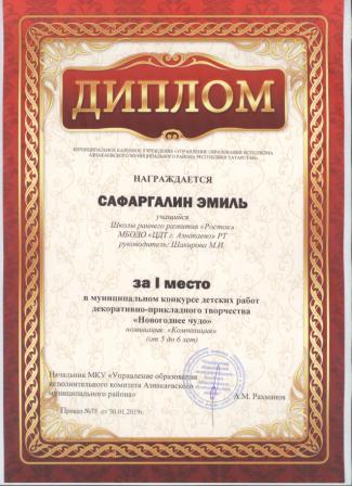 1 место на муниципальном творческом конкурсе «Новогоднее вдохновение» (Субханкулов Ф., Галиев М.М.)