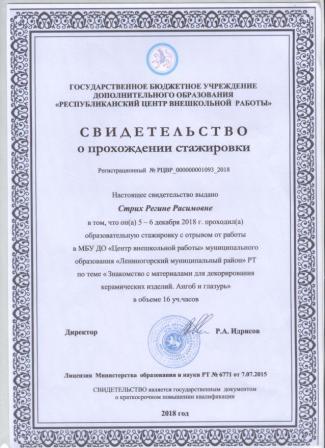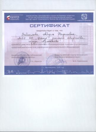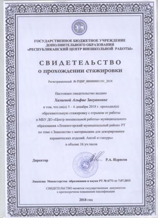 Свидетельство о прохождении стажировки в г. Альметьевск (Хакимова Г.М.)
