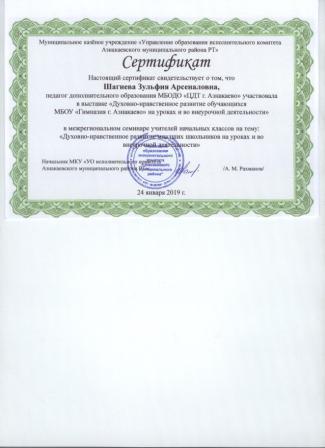 Сертификат о проведении мастер-класса (Шагиева З.А.)