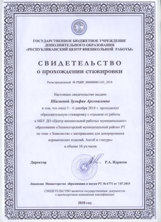 Свидетельство о прохождении стажировки (Шагиева З.А.)