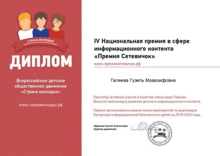 Всероссийский диплом участника организационного комитета в качестве члена жюри (Галеева Г.М.)