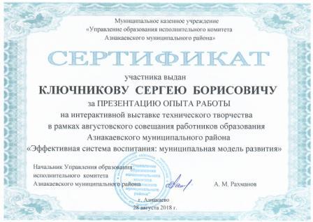 Сертификат участника мастер-класса (Ключников С.Б.)