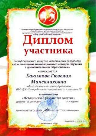 Участник Республиканского конкурса методических разработок (Хакимова Г.М.)