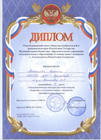 Диплом победителя зонального конкурса рукодельной книги (Урманчиев Р., Зайниева Р.З.)
