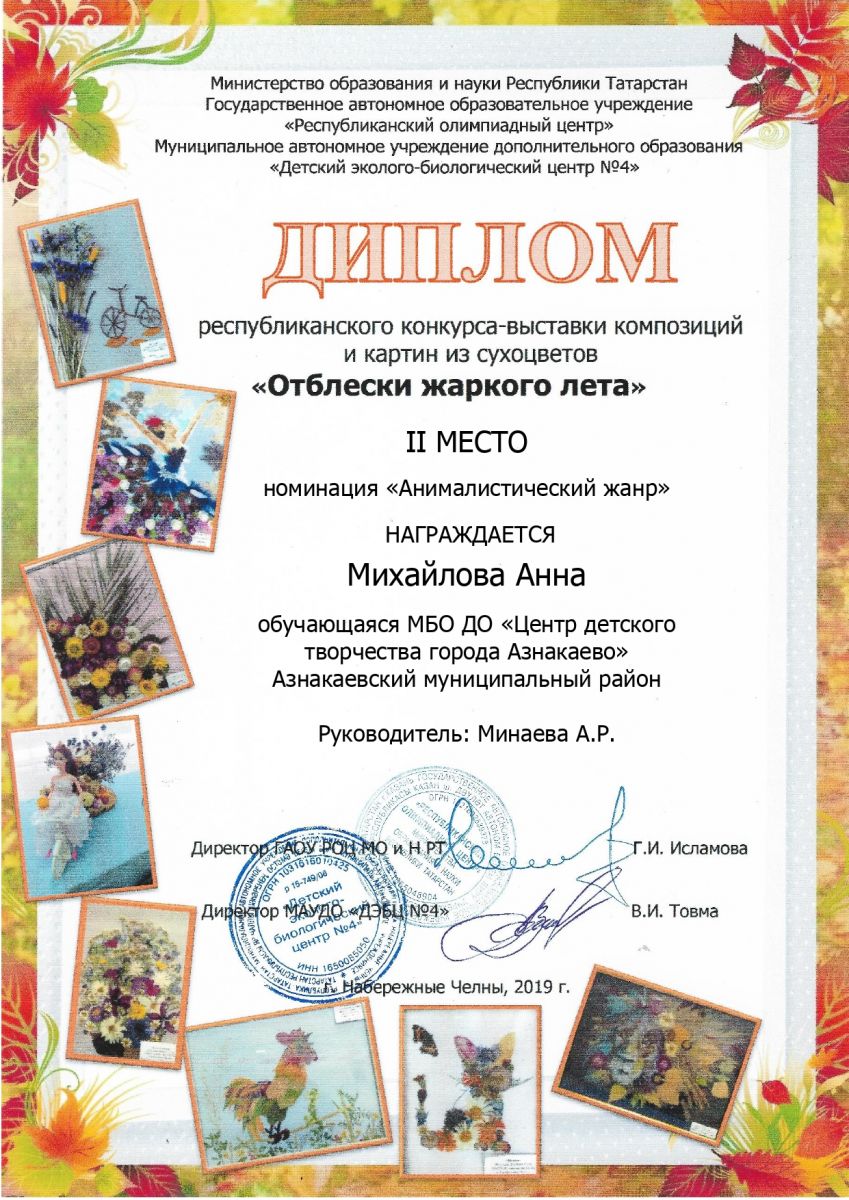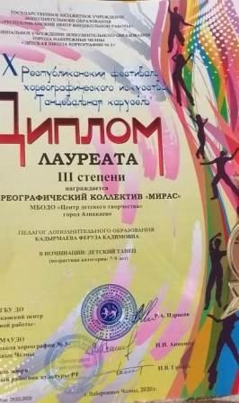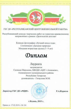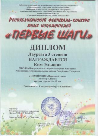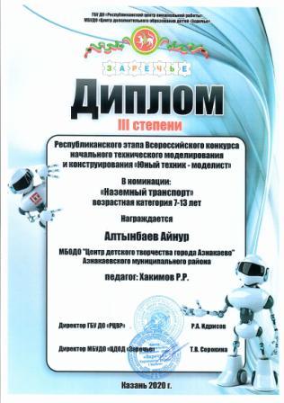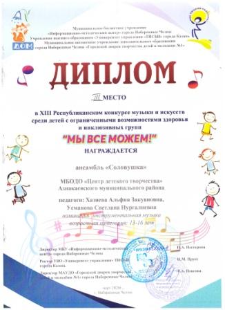 3 место в Республиканском конкурсе творческих работ (Низамова А., Низамова Л.Р.)