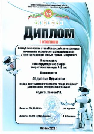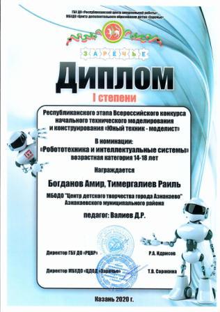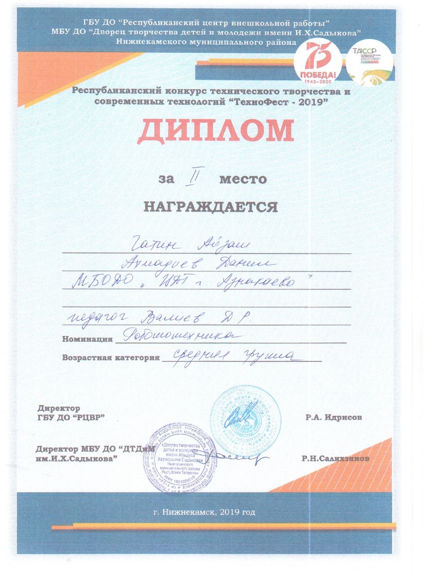 3 место в Республиканском конкурсе "Технофест - 2019" (Фаухутдинов С.Усманов А.Ш.)