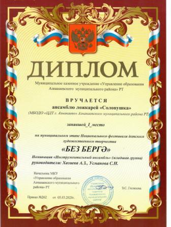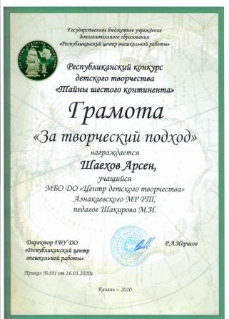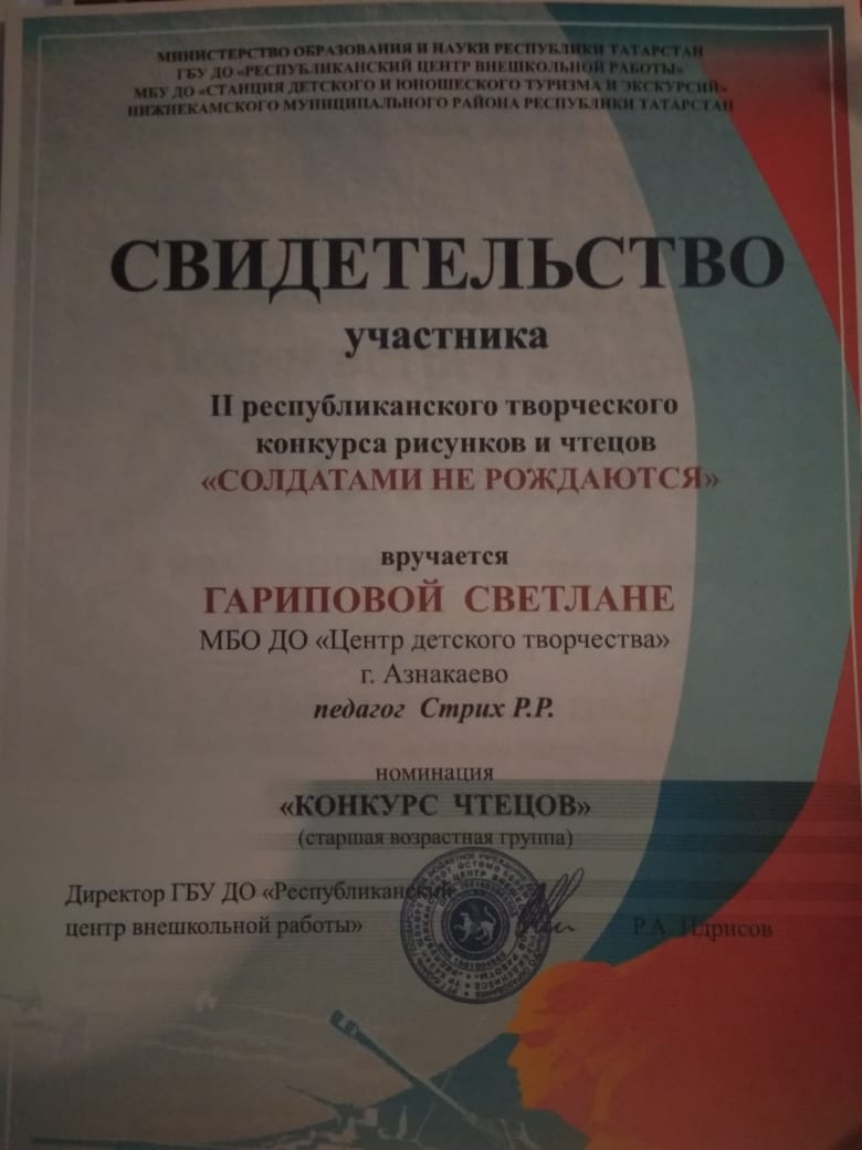 За победу в республиканском творческом конкурсе (Галеева Р., Галеева Г.М.)