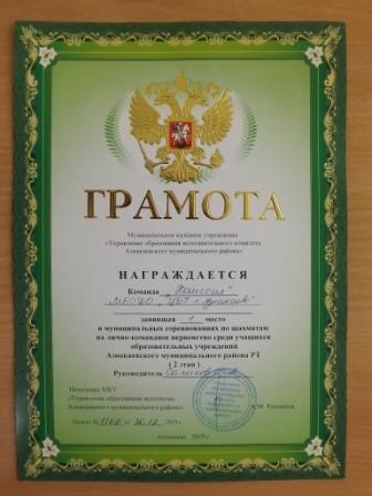1 место в муниципальных соревнованиях по шахматам на личное первенство (Джанзакова И., Салихов С.А.)