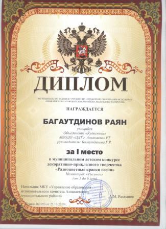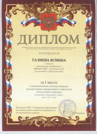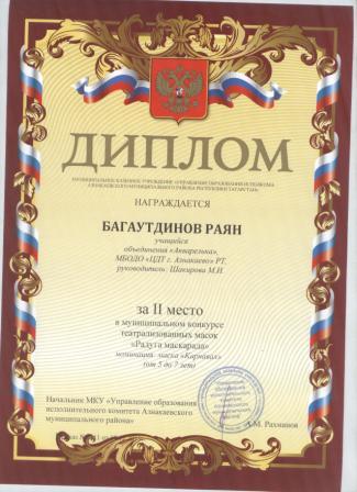 1 место в муниципальном конкурсе театральных масок «Радуга маскарада» (Галиев М., Багаутдинова Г.Р.)
