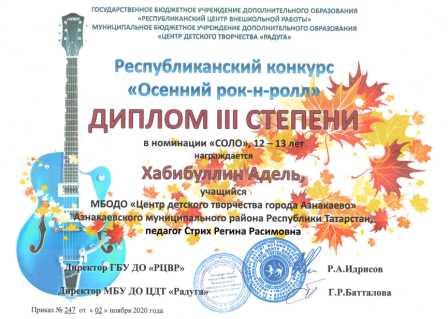 3 место в Республиканском конкурсе «Осенний рок-н-ролл» (Хабибуллин А., Стрих Р.Р.)