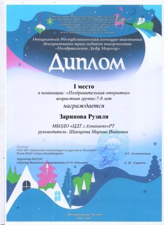 1 место в Республиканском конкурсе авторских видео мастер-классов "Педагог-мастер" (Хазеев Р.З.)