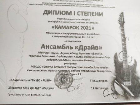 1 место в Республиканском конкурсе «Осенний рок-н-ролл» (Ахунов А., Стрих Р.Р.)